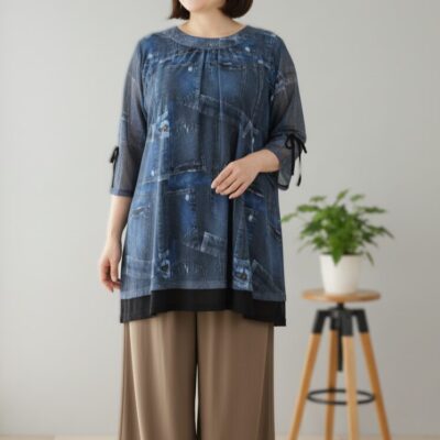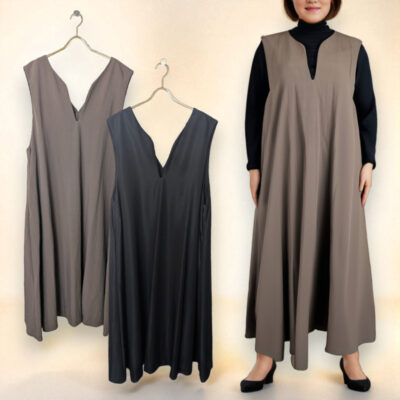 黒は色合わせが難しいのでパンツをご持参いただき、黒のチュニック&ロングカーディガン(ポリエステル素材)のアンサンブルアイテムと合わせてうまくまとまりました。