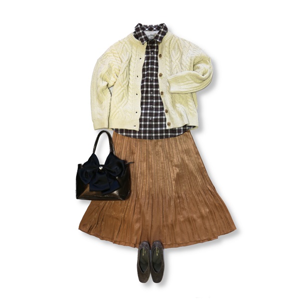 縄編みのカーディガンが羽織アイテムとしてもオススメ!