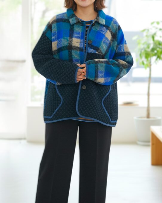 また、柄の切り替えが立体感を生み出し、のっぺりとした印象になりがちな冬の着こなしに奥行きを与えてくれます。