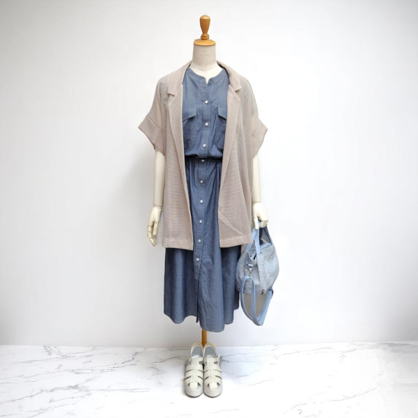 Tシャツやノースリーブに合わせてラフに着たり、ワンピースの上から羽織ってドレッシーにも使ったり、いろいろなシーンで活躍します。シンプルなデザインだから、どんな服にも合わせやすい♪