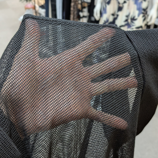 近年は透け感のある“シアー素材”がトレンド。UMEYAセレクトの半袖メッシュジャケットは、ほんのり肌が透けて見える絶妙なメッシュ感が持ち味です。涼しげで爽やか、見た目にも軽やかな印象に。