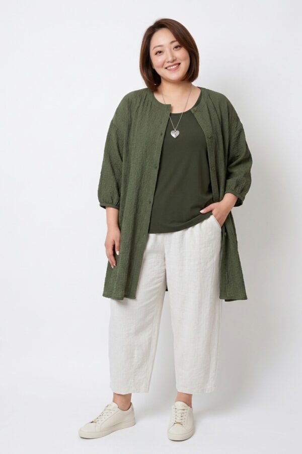 白いインナーを合わせれば清涼感が生まれ、落ち着いた色を選べばぐっと大人っぽい印象になります。 「何通りも着られる」というよりも、「今日の気分に合わせていける」という感覚の方が正確かもしれません。