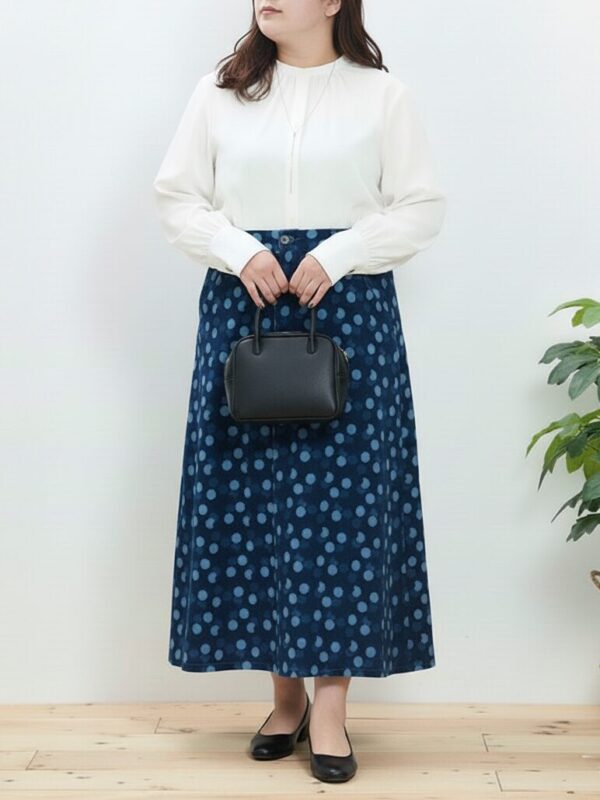 今回は、そんな揺れる大人世代の心に寄り添うとっておきの一着「水玉柄デニムスカート」をご紹介します。