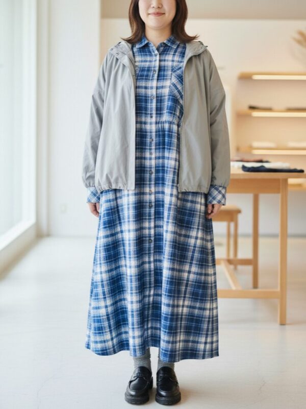 手持ちのパンツやスカートとも合わせやすいチェック柄なので、「何と合わせよう」と悩みすぎなくていいのも、日常使いしやすい理由のひとつです。
