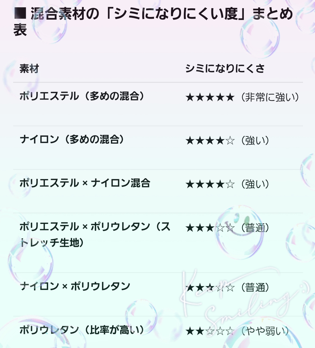 🌟シミになりにくい素材🌟
