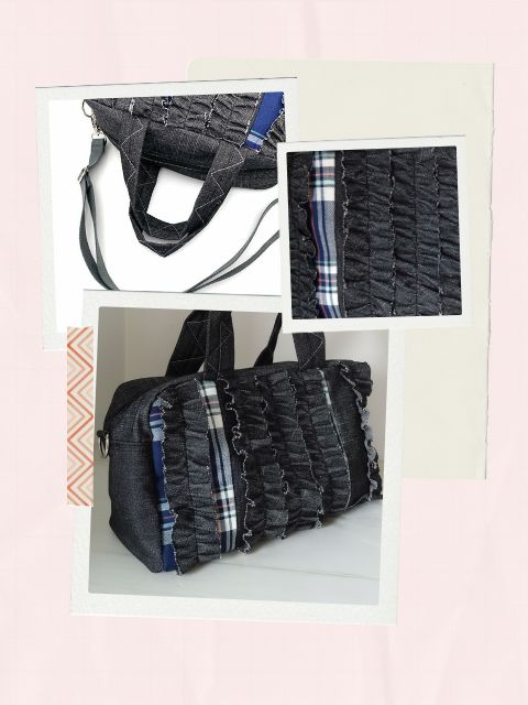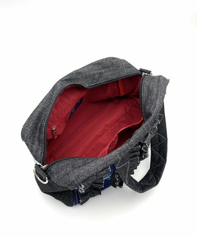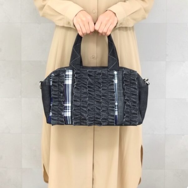 フリルをあしらったデザインが、ほんのりとした甘さを添えつつ、デニムやチェック柄を組み合わせたパッチワークが大人の女性にふさわしい遊び心を感じさせませんか?