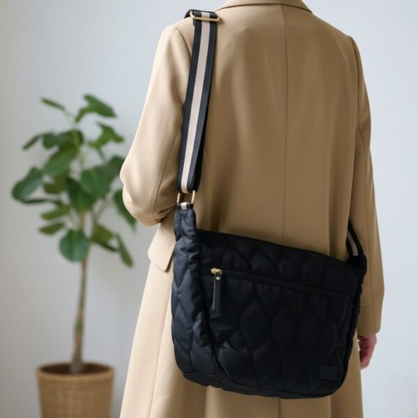 このキルティングバッグの素晴らしいところは、見た目以上に軽いこと。肩にかけても負担を感じにくく、長時間持ち歩いても疲れにくかったです。