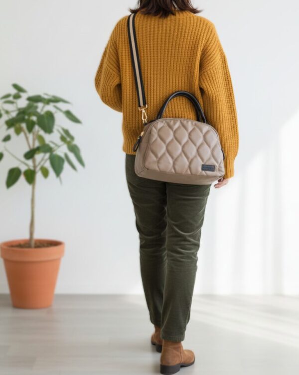 手に取った瞬間「あ、これは良い!」と感じたこのバッグ。キルティング素材ならではの温かみのある質感が、なんとも言えない安心感を与えてくれます。