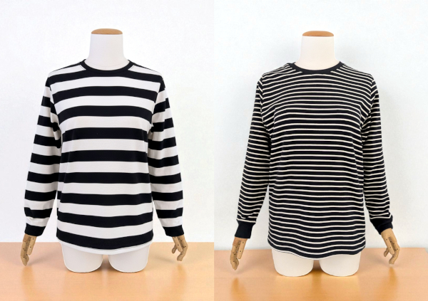 サイズは全く同じ2枚のカットソー。太いボーダーよりも、細いボーダーの方が締まってスッキリした印象があります。