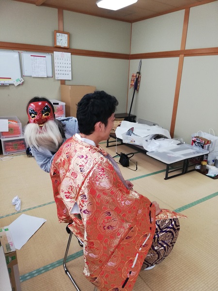 その霜月大祭では、地域の神輿の先頭を歩く天狗がいます。