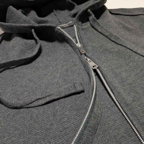 ニット目の美しいジップアップフーディです。